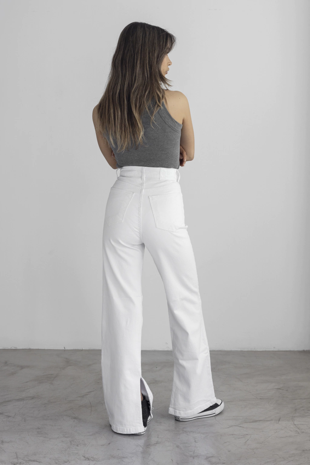 Tiro Súper alto. Tiene corte recto, tiro súper alto y una abertura lateral.