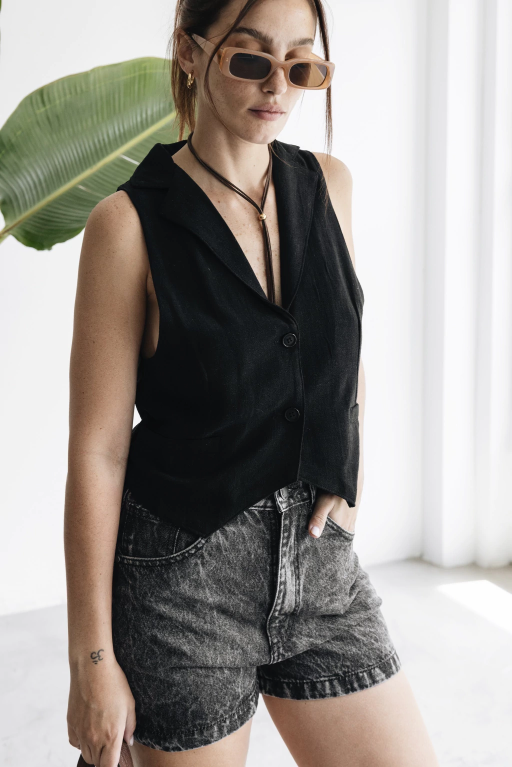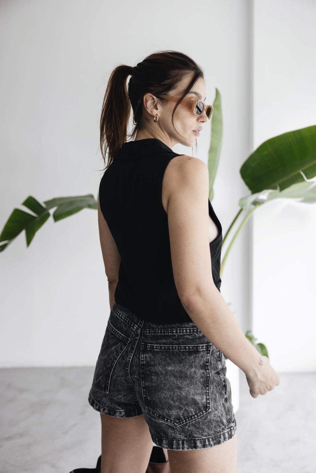 Short de Jean. Tiro Super Alto, con botamanga.