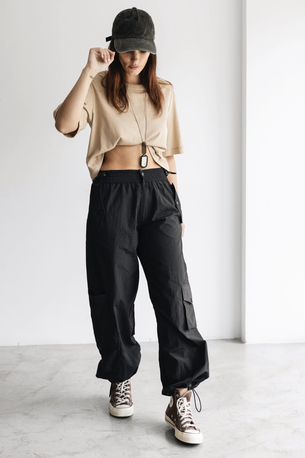 > Elegí tu talle: va a depender de cómo te guste usarlo, si más ajustado o suelto. Las medidas estan expresadas en contorno. La cintura tiene elástico, la medida puesta acá es relajado, sin estirar: